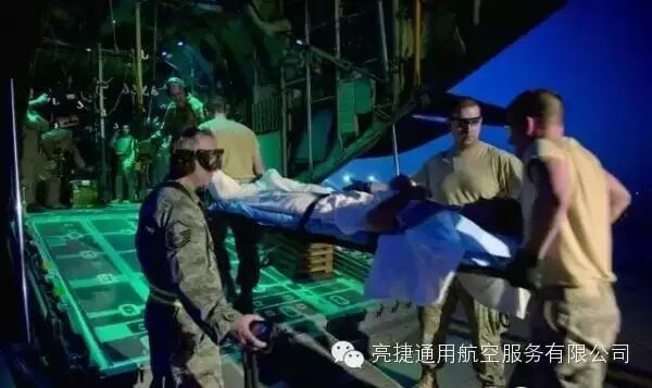后来美国以C-130E/C-130H/C-130J及L-100-30(C-130的民用型)为平台进行改装,可作为空中医院和手术飞机。例如C-130J的改型可装载担架74张,飞机内部配备了全套医疗设备各种应急必要品,包括手术室和急症看护设备,并配备了由医生和护士组成的医疗小组。这些C-130在机翼下方的吊舱中安装有特殊的辅助动力装置,使其在地面扩展时能够为飞机提供动力,确保医疗设备运行时间达到72h以上,为就地治疗及地面扩展提供了条件。该种飞机用环控系统及必要降噪减振措施,使医疗救援飞机达到医学对工作环境的要求。