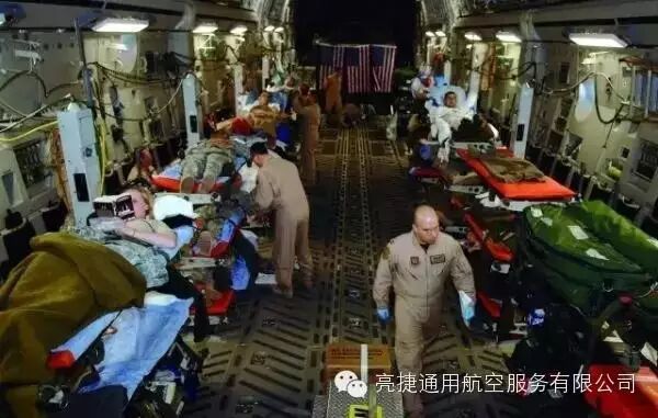 以美国C-17改装的医疗救援飞机为例,其最大运输距离可达8000km,货舱容积达592m3,可以在野战机场甚至土质跑道上降落,和C-130中型运输机的要求差不多,C-17属于多用途飞机,其医疗设备可以拆卸后执行普通运输任务。